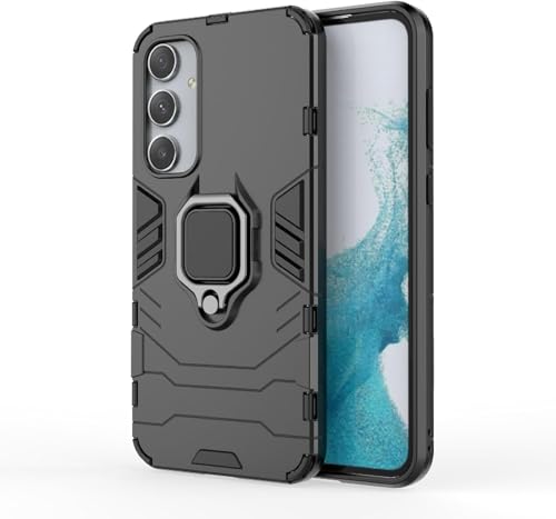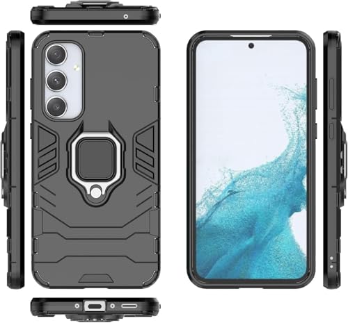 Generic - Back Case Tough Armor Bumper Cover for Samsung Galaxy A25 5G with Ring Holder Kickstand in-Built | 360 Degree Protection Back Case Cover (Black)