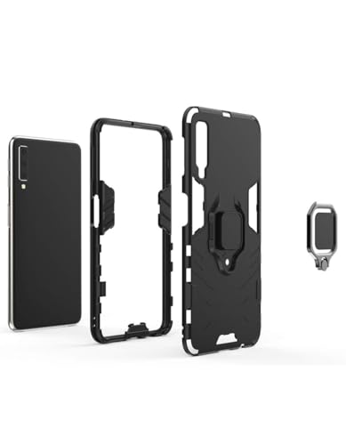 - Back cover compatible with Galaxy A7 2018 Case, 2 in 1 Armour Style Heavy Duty Hybrid Dual Layer Armor Defender PC + TPU Case Cover with Magnetic Car Mount for Samsung Galaxy A7 2018 -All Black