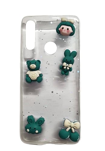 Generic - جراب حماية خلفي بظهر صلب شفاف مع حواف من السيليكون الناعم وتصميم مزين بألعاب صغيرة للبنات ومتوافق مع موبايل هواوي هونر 8X، أخضر غامق