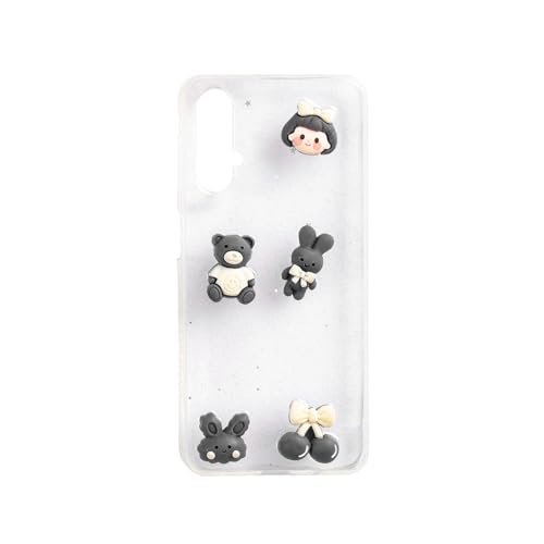 Generic - جراب حماية خلفي بظهر صلب شفاف مع حواف من السيليكون الناعم مع ألعاب صغيرة للبنات متوافق مع هواوي نوفا 5T، أسود