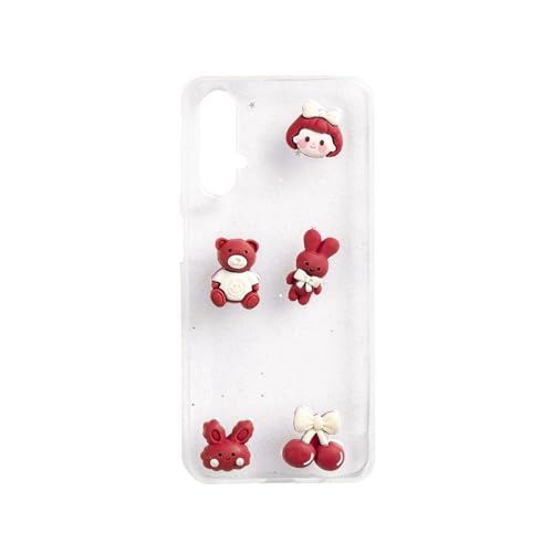 Generic - جراب خلفي متوافق مع هواوي نوفا 5T، ظهر صلب شفاف للبنات مع حواف من السيليكون الناعم والالعاب الصغيرة - احمر غامق