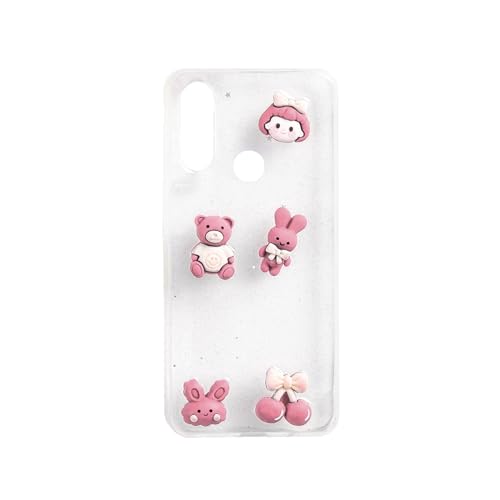 Generic - جراب حماية خلفي متوافق مع هواوي Y7 2019 / Y7 برايم 2019، ظهر صلب شفاف للبنات مع حواف من السيليكون الناعم وألعاب صغيرة - وردي