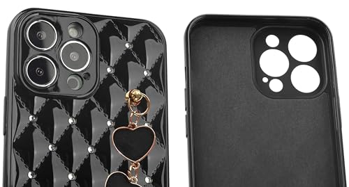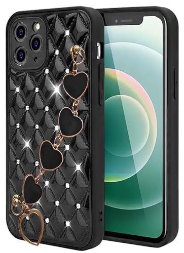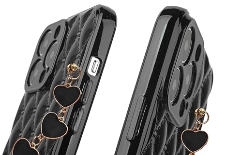 Generic - Back Cover Silicone shockproof with high Camera protection and Chain for women and cute girls Compatible with iPhone 12 Pro 6.1 inches - Black