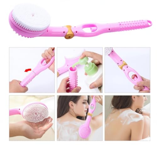 Generic - Back Massage Brush for Bathroom with Long Handle and Shower Gel + Extra Loofah for Replacement- Exfoliating Skin and Deep Body Cleansing - Remove Dead Skin and Relax Muscles in Shower