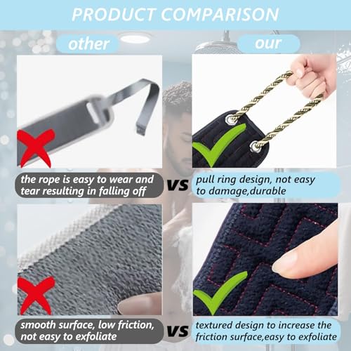 TNSOYCA - Back Scrub for Shower, Double Sided Exfoliating Washcloth with Handles, Deep Cleansing Your Body for Men and Women (Black)