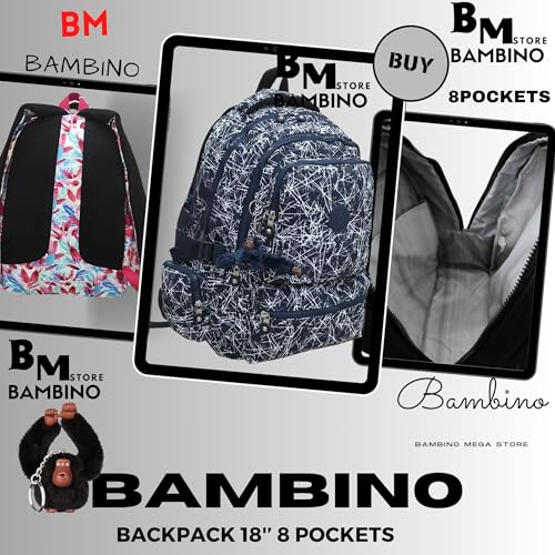 Generic - Backpack 18 Inch with 8 Pockets - Padded Back and Shoulder Straps - for School, Travel and College.(Multicolo Blue)