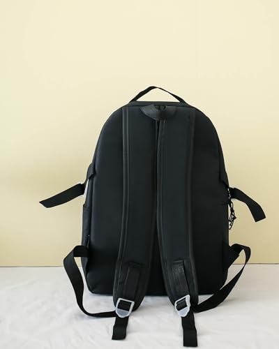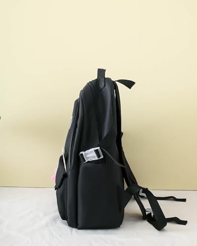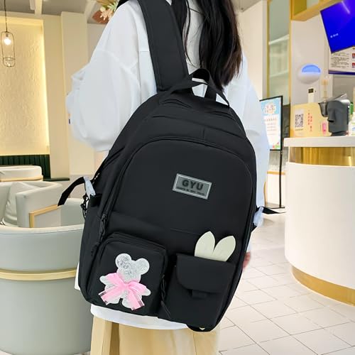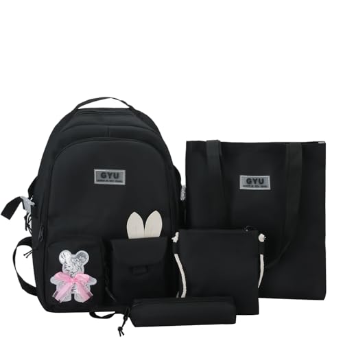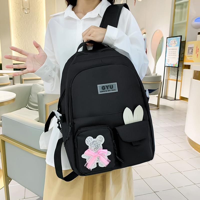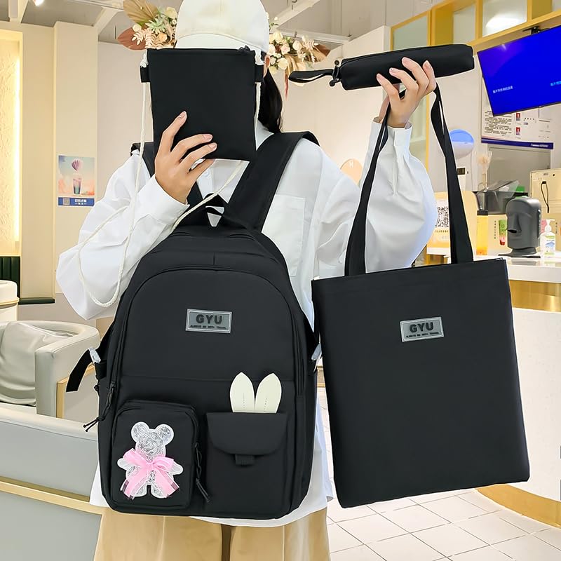 Generic - Backpack Set 4pcs Backpack for School Teens Girls Daypack Large with Pendants and Pins, Pen Case, Tote Bag, Small Bag-5017-Black