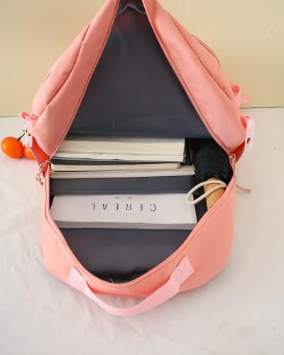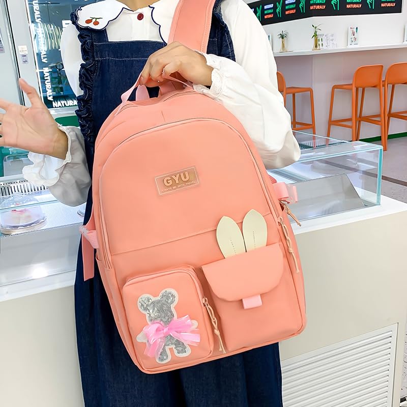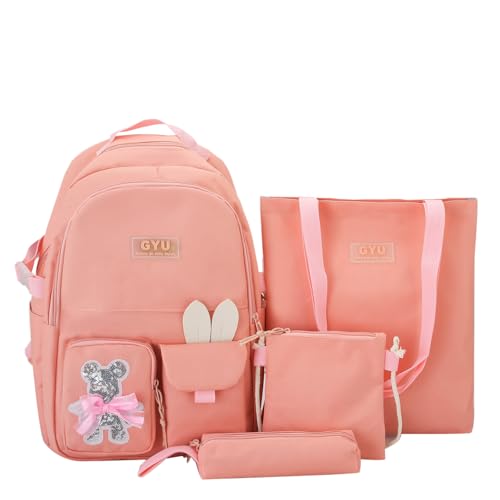 Generic - Backpack Set 4pcs Backpack for School Teens Girls Daypack Large with Pendants and Pins, Pen Case, Tote Bag, Small Bag-5017-Pink