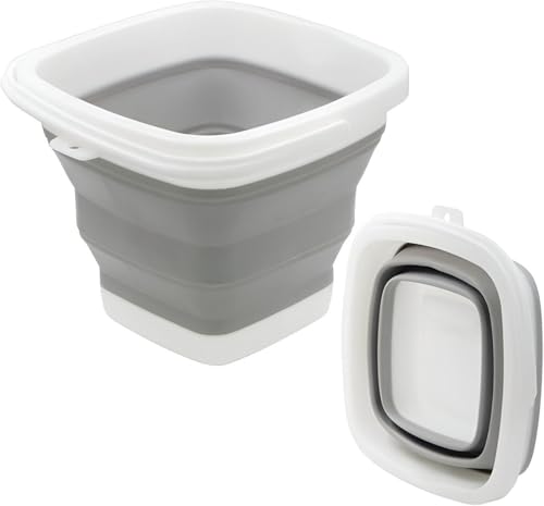 - This collapsible 10-liter silicone bucket transforms into a compact 32x32x5 cm slab when folded, making it ideal for small spaces, travel, or storage in closets, cars, or camping gear bags.
