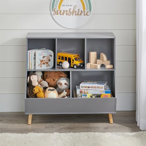 Badger Basket - Badger Basket 5-Bin Kid's Wooden Toy Storage Organizer and Bookshelf with Feet - Gray