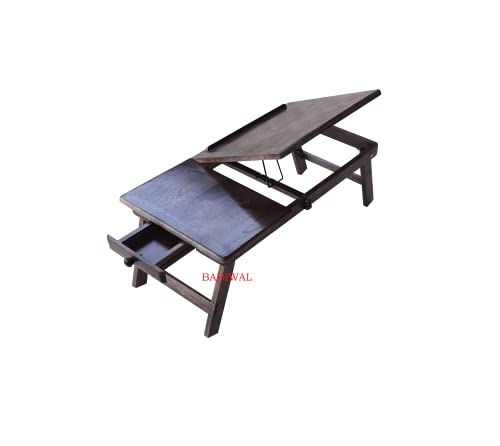 Badiwal Interio - Multipurpose Solid Mango Wood Adjustable and Foldable Design Laptop Table/Lapdesk of Large Working Area for Home,(24"x13") (Black)