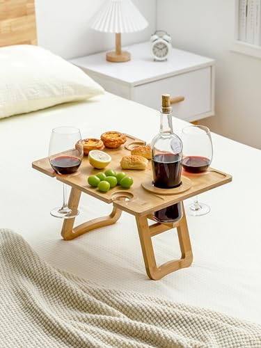 - Foldable & portable - This outdoor picnic table can be folded into a compact shape, making it space-saving. The foldable design of this beach picnic table enables you to keep it in your car or with your outdoor gear. When folded, the table legs securely attach to the back of the board with magnets, and the wine bottle hole works as a handle, enhancing the portability of this folding snack tray.