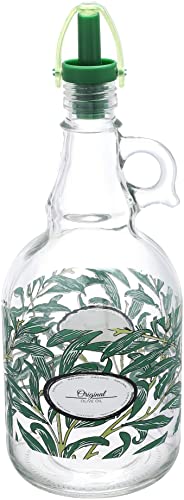 bager - bager زجاجة زيت زيتون دائريه بيد وغطاء بلاستيك بوز مزخرفه (1000 ملى) - الوان متعدده