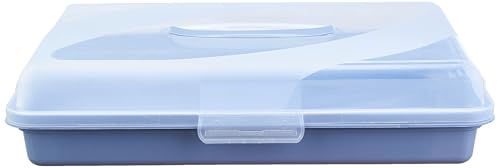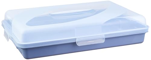bager - Bager Plastic Rectangular Pastry and Cake Storage Box with Transparent Lid and Inner Tray, Large, White/Sky Blue
