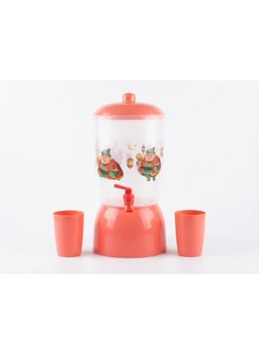 generic - "Bahja" 2-in-1 Plastic Juice Dispenser & Serving Bowl Set with Tap and 2 Cups – Ramadan Themed Beverage Container – Peach/Light Orange