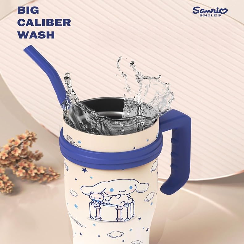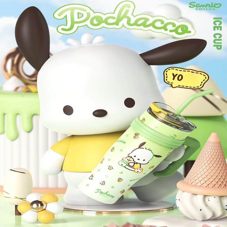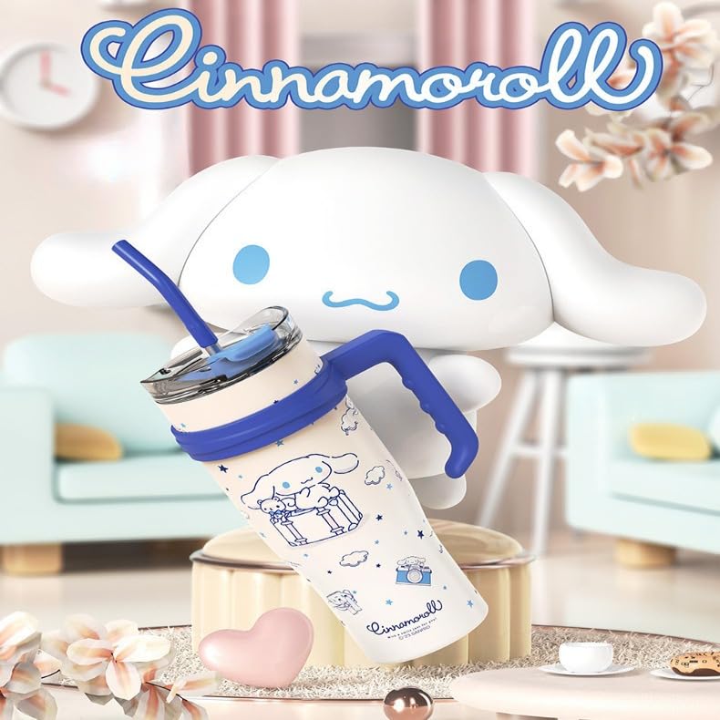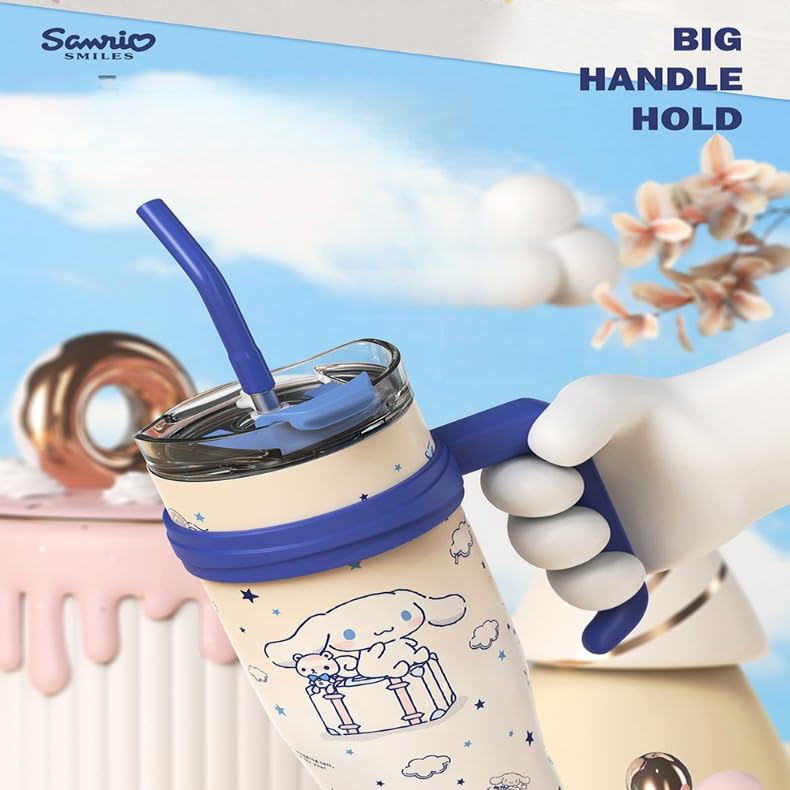 BAISEDEXUE - 40oz Vacuum Insulated Travel Mug with Foldable Straw | 316L Stainless Steel | 12-24hr Temp Retention | Perfect for Business, Home, Outdoors, Car | Durable Grip Handle (Pochacco)