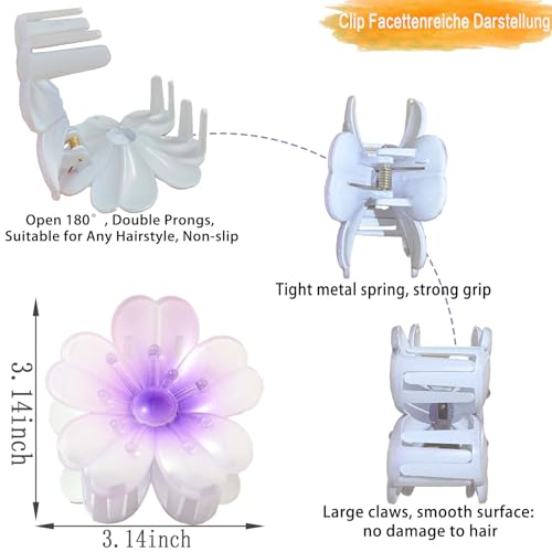 - المقاس واللون: مقاس مشبك الشعر على شكل زهرة 3.15 انش × 2.7 انش × 1.57 انش، كل مخلب زهرة حوالي 26 غرام. يأتي مشبك الشعر هذا بستة ألوان، لديك المرونة لاختيار لون مشبك الشعر المثالي لملابسك لابتكار تصفيفة شعرك الخاصة، مما يجعلك ساحرة وأنيقة.
