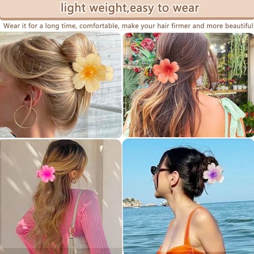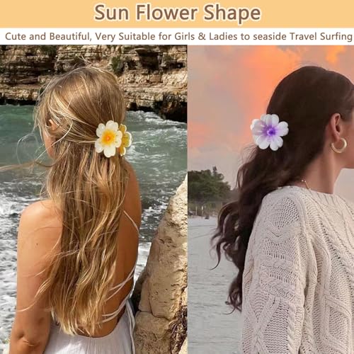 BAISEN - مشابك شعر ملونة على شكل زهرة هاواي مقاس 3.15 انش للنساء من بايسين، مشبك شعر مجعد سميك ورفيع، قوي غير قابل للانزلاق، اكسسوارات شعر للشاطئ والعطلات للنساء والفتيات