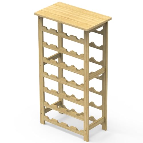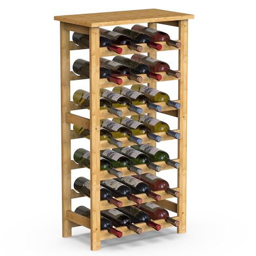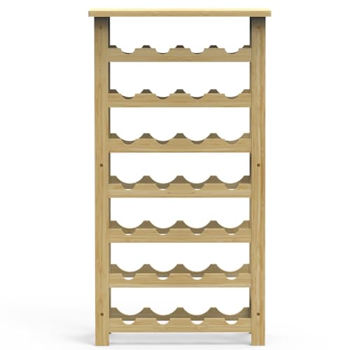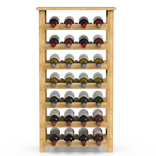 BAKAJI - BAKAJI Bamboo Wood Wine Rack with 28 Compartments for Champagne Wine, Floor Wine Rack for Bar, Living Room, Kitchen, Bistro, Restaurant, 47 x 29 x 93.5 cm (Natural)