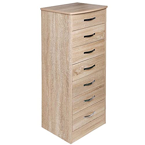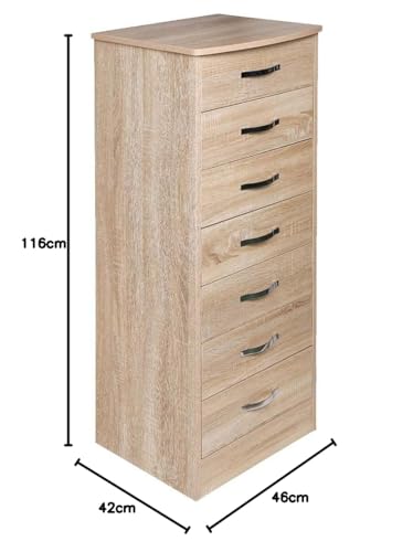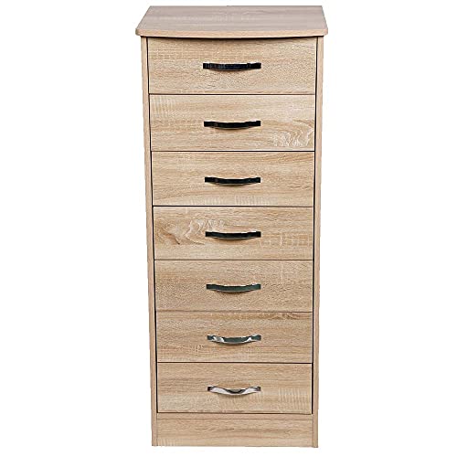 BAKAJI - BAKAJI Cabinet Cabinet with 7 Drawers Settimino Wooden MDF Metal Knobs Modern Design Home Bedroom Furniture, Size 46 x 42 x 116 cm (Oak)