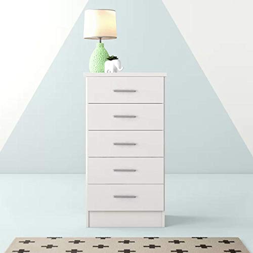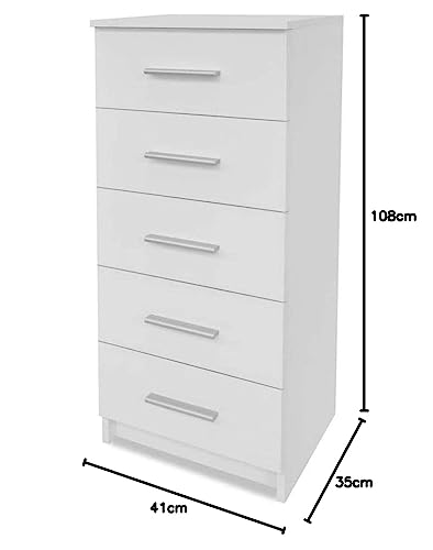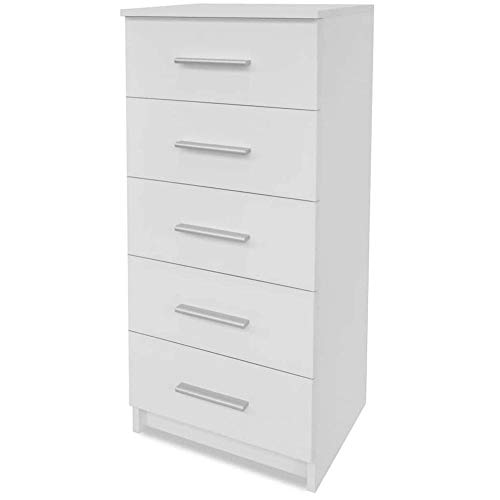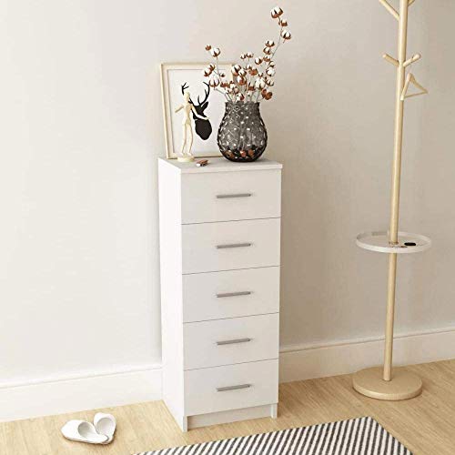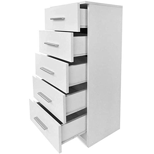 BAKAJI - BAKAJI Cabinet Chest of Drawers 5 Drawers in MDF Wood Metal Knobs Modern Design Home Bedroom Furniture Size 35 x 41 x 108 cm (White)