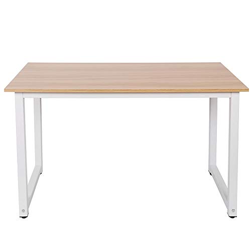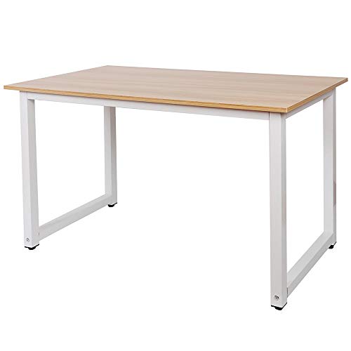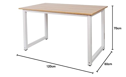 - HIGH SAFETY AND STABILITY This home and office desk comes with a solid powder-coated metal tubular frame in a very elegant white colour with MDF wood desk top in natural wood colour that gives a truly unique touch to this fantastic desk.