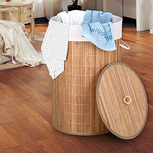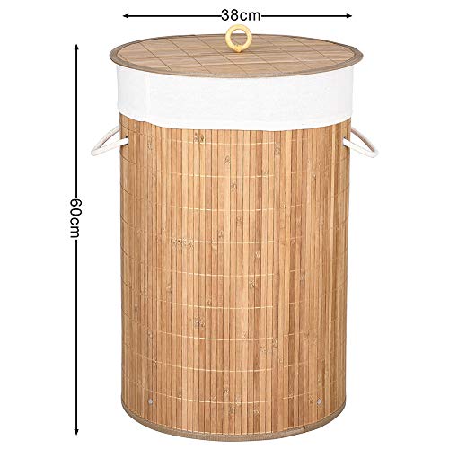 - This beautiful laundry basket is made entirely of bamboo wood material, very strong and durable, inside is lined with a fabric bag, which does not absorb the unpleasant odours of dirty laundry and can be removed from the bamboo frame for easy washing.