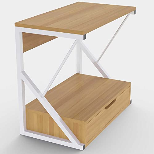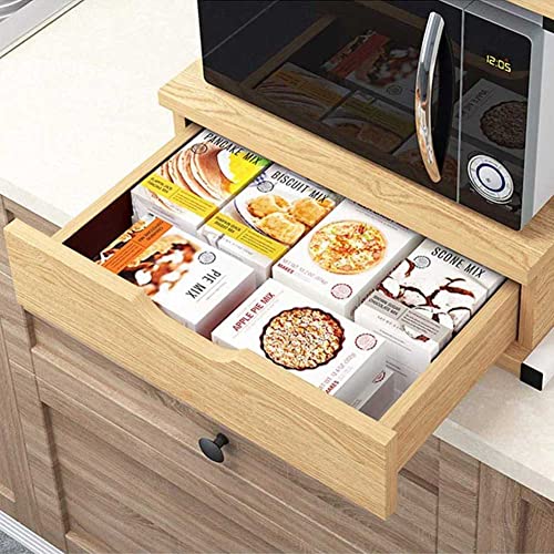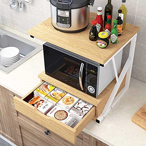 BAKAJI - BAKAJI Metal Microwave Shelf with MDF Wood Shelf and Drawer Organizer Shelf Utensil Holder Kitchen Tools Modern Design 54 x 35 x 50 cm (Oak)