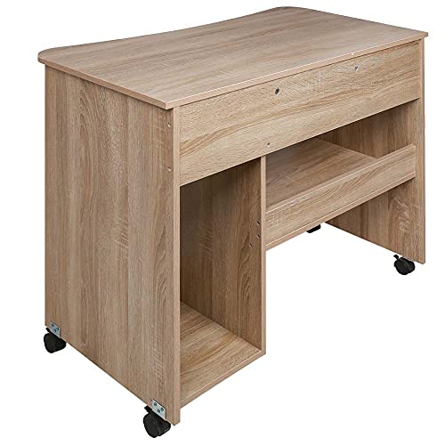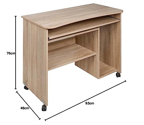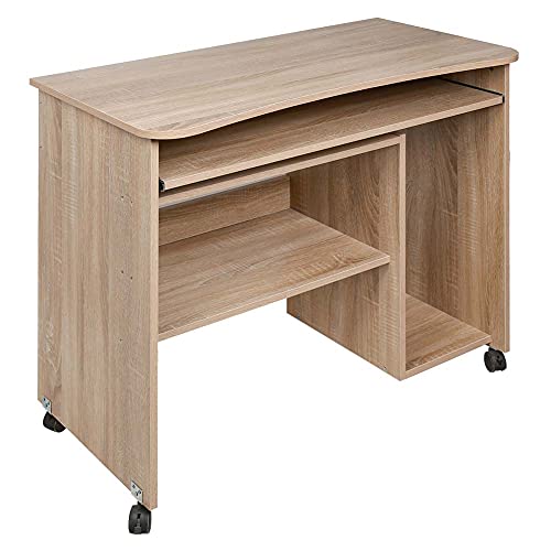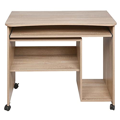 BAKAJI - BAKAJI Schreibtisch mit Tastaturablage und Ablage aus Holz mit Rollen Eiche, Unica