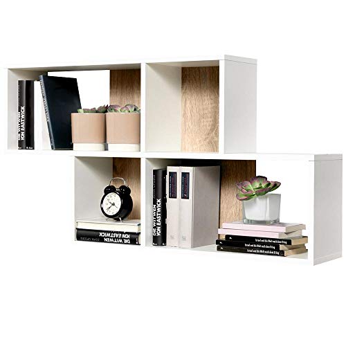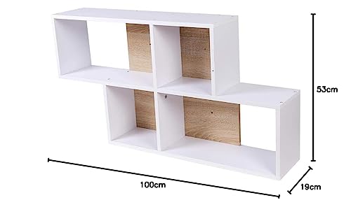 BAKAJI - BAKAJI Wall Shelf Bookcase with 4 Shelves, MDF Wood Structure, Two-Tone Dimensions, 100 x 53 x 19.5 cm, Wall Decoration Home Office Furniture (White Oak)