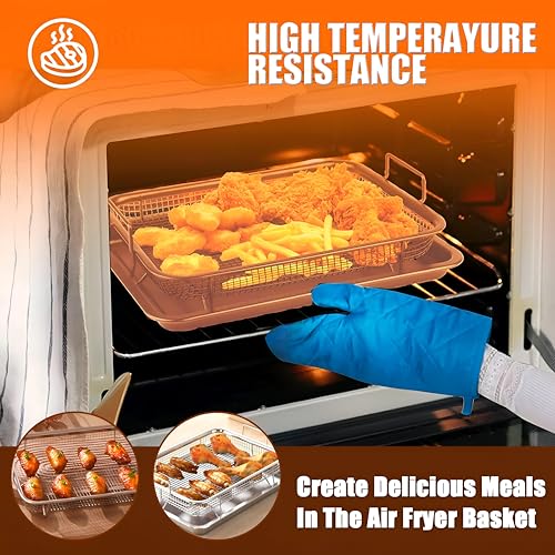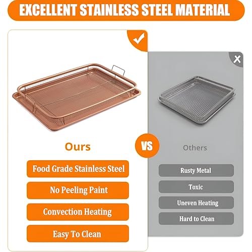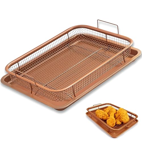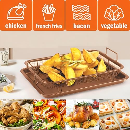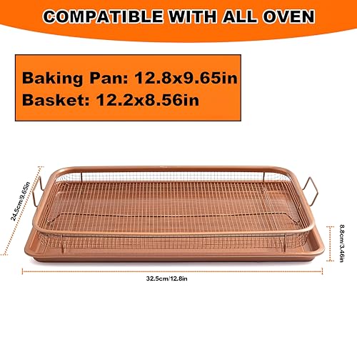 Generic - صينية للخبز كبيرة آمنة للاستخدام في الفرن متوافقة مع المقلاة الهوائية بلمسة نهائية نحاسية مع رف شواء وقطعة شبكية، 32 × 24 سم