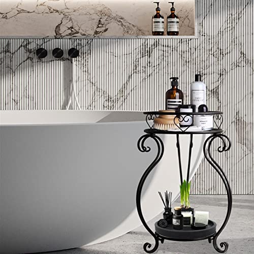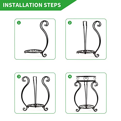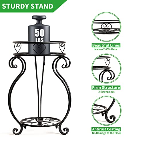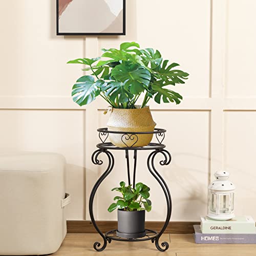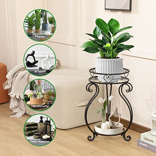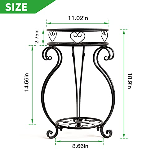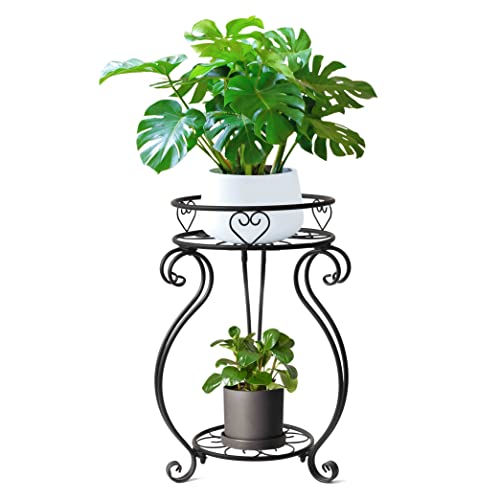 Bakovity - Metal 2 Tier Plant Stand, 18.5 Inch Tall Potted Holder Rack, Indoor Outdoor Round Flower Pot Shelf, Rustproof Iron Garden Container For Garden Corner of Courtyard Living Room Balcony, Black