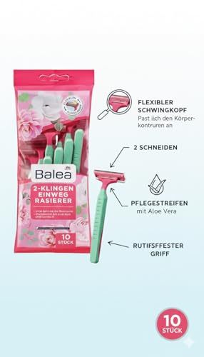 Generic - Balea Women’s 2-Blade Body Hair Removal Razors – Pack of 10, Smooth & Gentle Shaving, Stainless Steel Blades, Ergonomic Plastic Handle, Multicolor Disposable Razors for Face, Underarms & Body