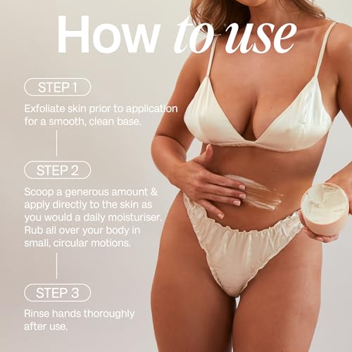 - تم تركيب زبدة التسمير التدريجي للجسم من بالي من النياسيناميد وحمض الهيالورونيك وفيتامين E لتعزيز الترطيب، بينما تساعد زبدة الشيا والكاكاو في إصلاح حاجز البشرة.