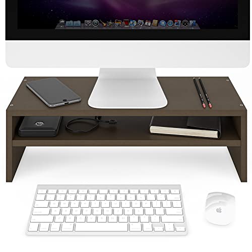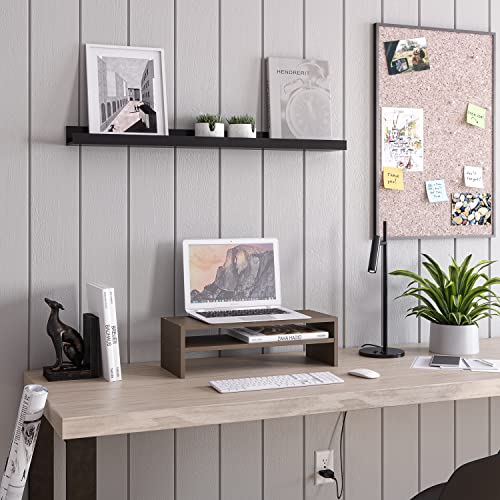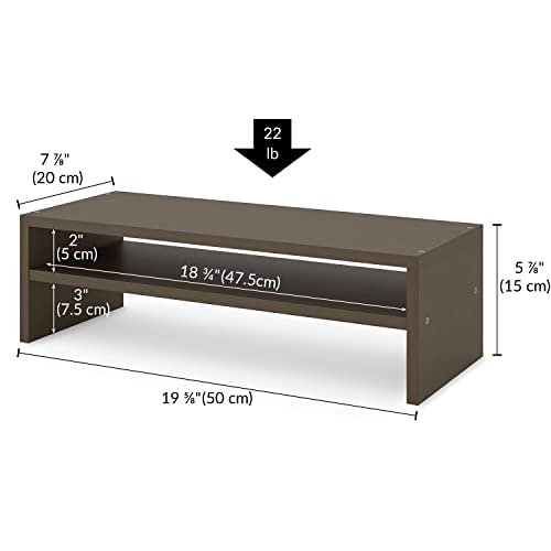 - DESIGN: Improve your ergonomic posture by raising your monitor or laptop while using the 2 storage compartments to keep desktop organized