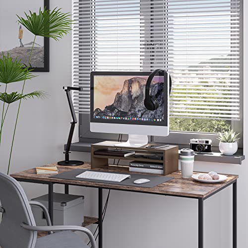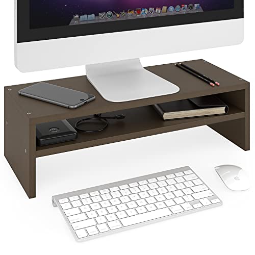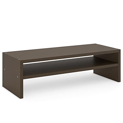 Ballucci - Ballucci 2-Tier Monitor Stand for Desk, Wood Desktop Monitor Riser with Storage Shelf, Printer Stand, Paper Organizer with 2 Compartments for Home Office - Brown