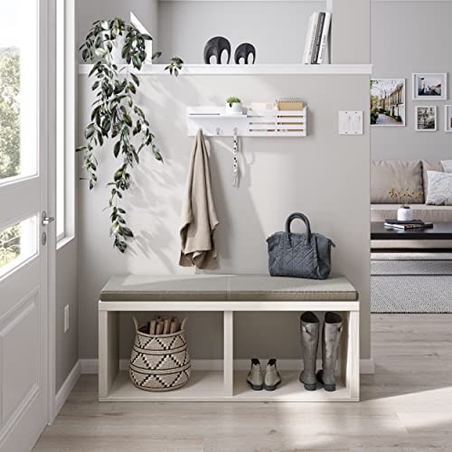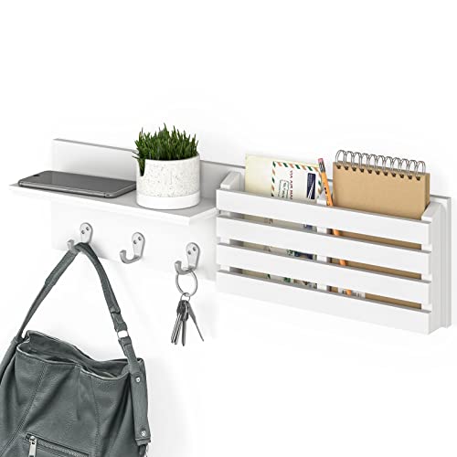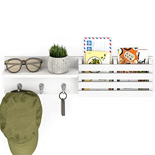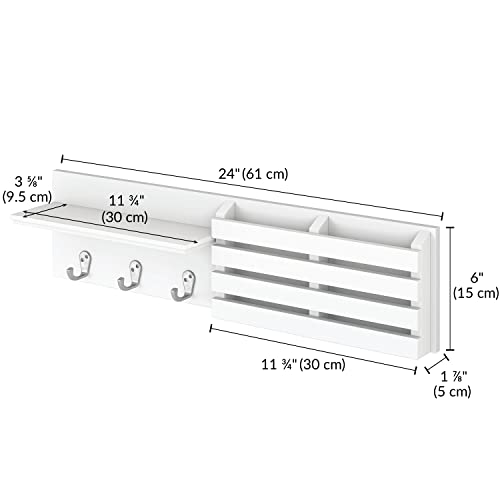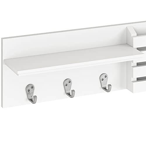 Ballucci - Ballucci 3 Key Hooks Wall Organizer with 1 Shelf & 2 Mail Slots, Modern Style, White, Wall-Mounted Shelf with Mail Organizer and Coat Rack