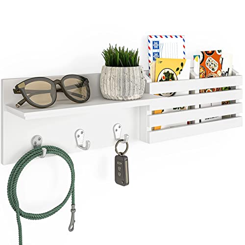 • WALL ORGANIZER: Featuring 3 metal wall hangers, 2 mail basket slots and 1 display shelf. It is ideal for hanging keys, dog leash, coat, or cooking utensils.