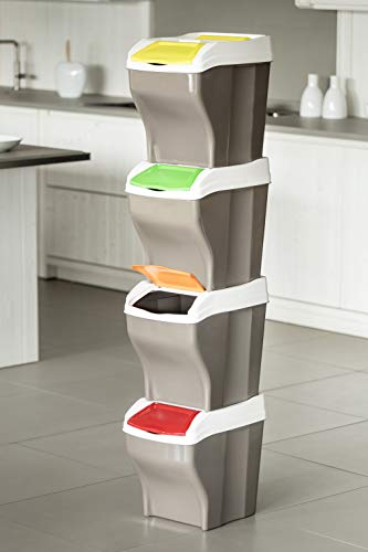 bama - Bama 4-Bin Recycling Set - 4x27L/30x40x37.5cm, with Bag Storage (Made in Italy)