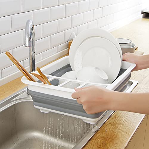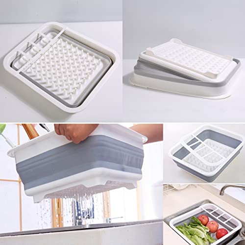 Spaceshoop - Bamada Collapsible Dish Drying Rack Drainer Board Portable Dish Drainer Foldable Silverware Organizer RV Camping Kitchen Accessories for Campers Travel Trailers (White and Gray)