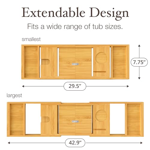 Bambüsi - صينية بانيو بيلمينت من خشب البامبو 100% مع جوانب قابلة للتوسيع وحامل للموبايل وحامل مدمج لكأس المشروب من بامبوسي