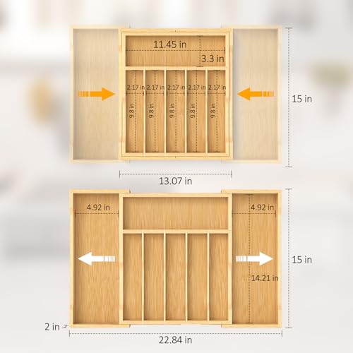 - DRAWER ORGANIZATION - With 13" to 23" width, 15" length and 2" height, it keeps kitchen utensils well-organized and easy to access as you need, and optimizes the drawer storage. Say goodbye to your out-of-control drawer from now on.