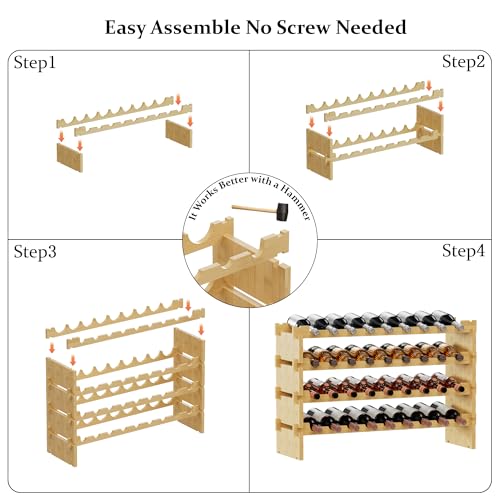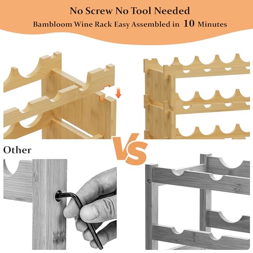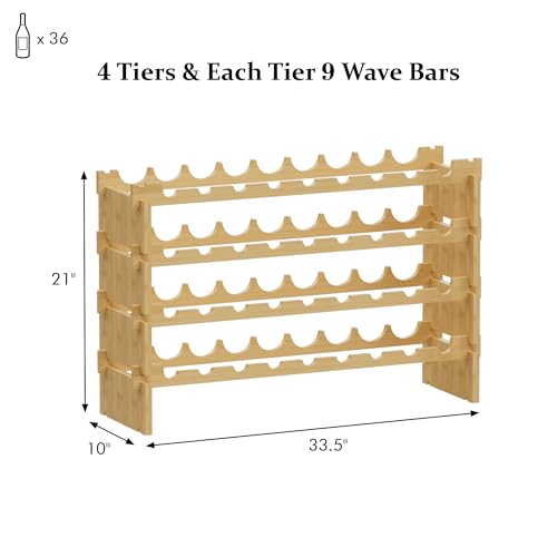 Bambloom - رف مشروبات قائم بذاته، تخزين زجاجات المشروبات قابل للتكديس، منظم حامل خشبي للمطبخ والقبو من بامبلوم رف لعرض زجاجات المشروبات سعة 36 زجاجة، لون ذهبي فاتح (خيزران)