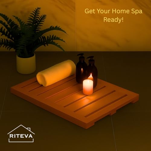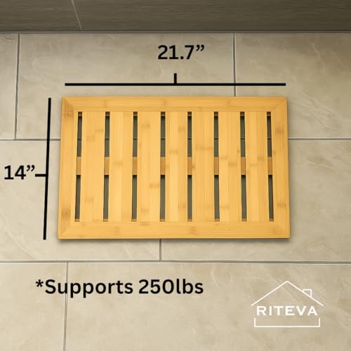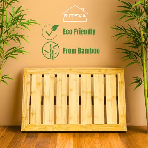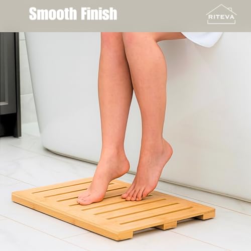 RITEVA - Bamboo Bath Mat, Non Slip Bath Mat, Bath Furniture, Bathroom Accessory, Natural Bamboo Furniture, Floor Mat for Spa & Sauna, Bamboo Mat for Indoor & Outdoor Spaces, Minimalist.