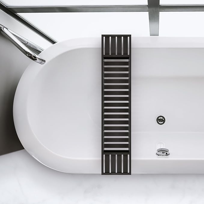 - رف حوض استحمام من الخيزران للاستحمام والقراءة والاسترخاء - مصنوع من الخيزران الطبيعي والمستدام الصديق للبيئة بنسبة 100%. يناسب جميع أحواض الاستحمام ذات الحجم القياسي حتى تتمكن من الاستمتاع بالاسترخاء والراحة. ببساطة ضعه فوق البانيو واستمتع بوظيفة رف صينية البانيو العملية.