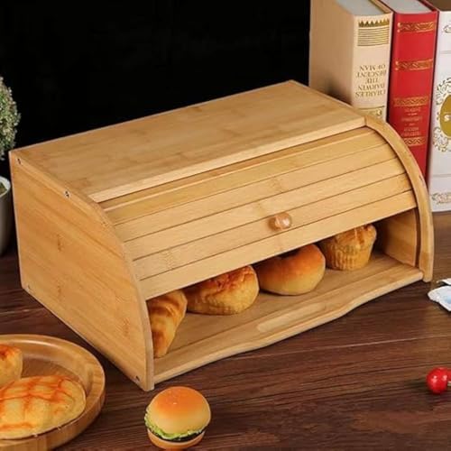 Generic - Bamboo Bread Box, Large Natural Bamboo Roll Top Bread Box for Kitchen counter, Food Storage Container, Modern Farmhouse Style Bread Box, Bamboo wooden boxes