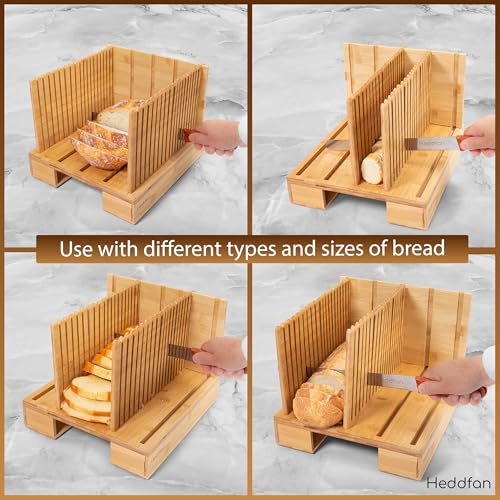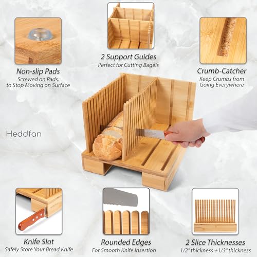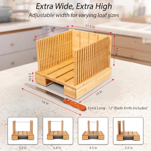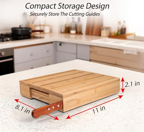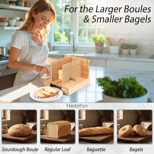 HEDDFAN - قطاعة خبز من الخيزران بتصميم فتحة سكين مدمجة للخبز المنزلي مع قسم لالتقاط الفتات والتخزين - عريضة للغاية وعالية وقابلة للتعديل - مناسبة للعجين المخمر - تتضمن شفرة سكين بطول 30.5 سم