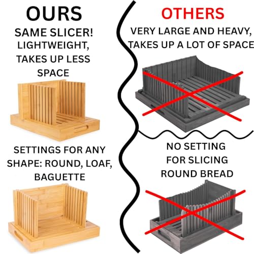 - تصميم نحيف وصغير الحجم وقابل للطي - يبلغ مقاس قطاعة خبز العجين المخمر هذه 12 انش × 8.5 انش × 2 انش مطوية و7 انش طول عند التركيب. تتطلب بعض الأدوات مكانًا دائمًا في مطبخك. قطاعة الخبز الخشبية القابلة للتعديل الخاصة بنا لا تفعل ذلك! يمكن طي تصميمه الذكي بشكل مسطح لوضعه بسرعة في الأدراج أو الخزانات أو حتى تلك الزاوية الصعبة. عندما تتصل الكربوهيدرات، ستعود إلى العمل في ثوانٍ، جاهزة للتقطيع والتقديم. سترغب في إظهار قطاعة الخبز المصنوعة من الخيزران هذه للخبز المصنوع منزليًا. هدية رائعة لخبازي الخبز.