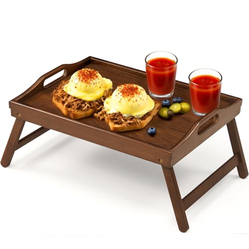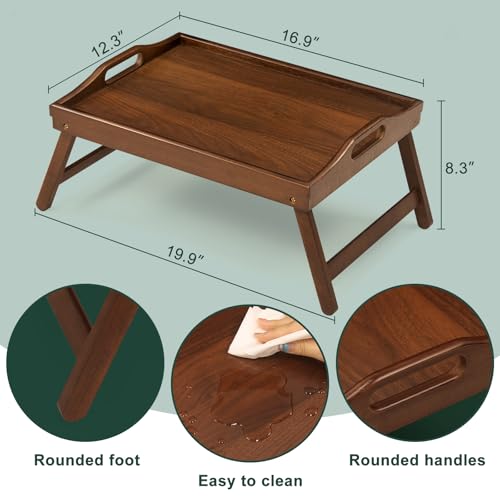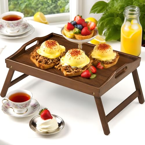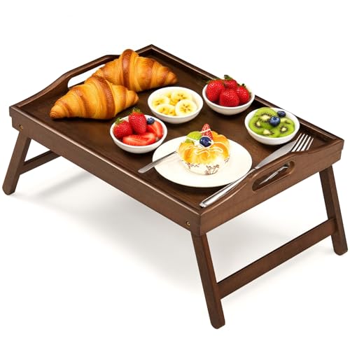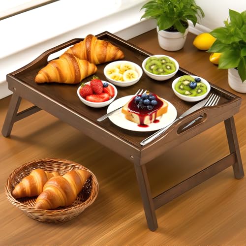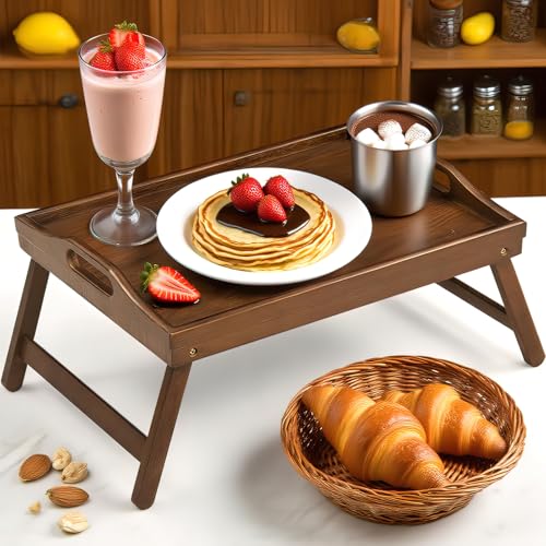 SPOPSOOD - Bamboo Breakfast Tray Table with Folding Legs for Bed Table Sofa - Eating & Laptop Tray Bamboo with Folding Legs (Walnut)
