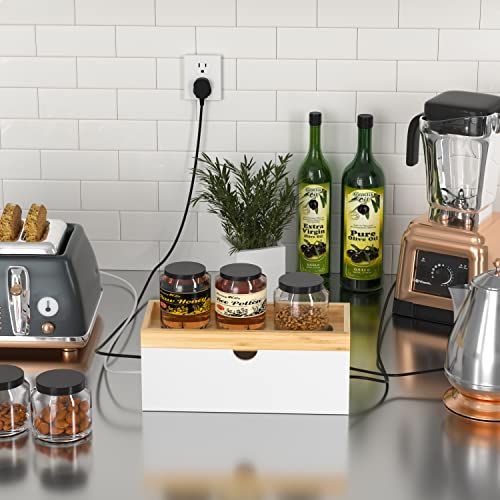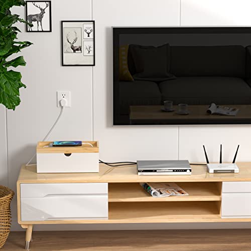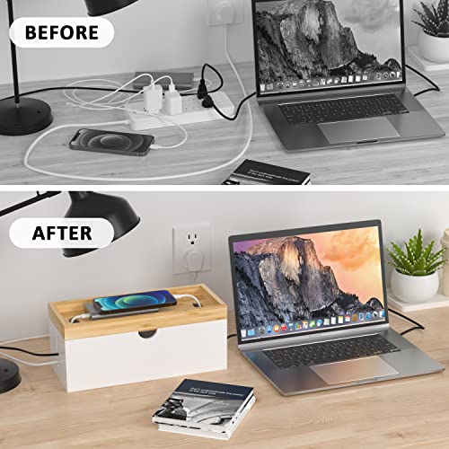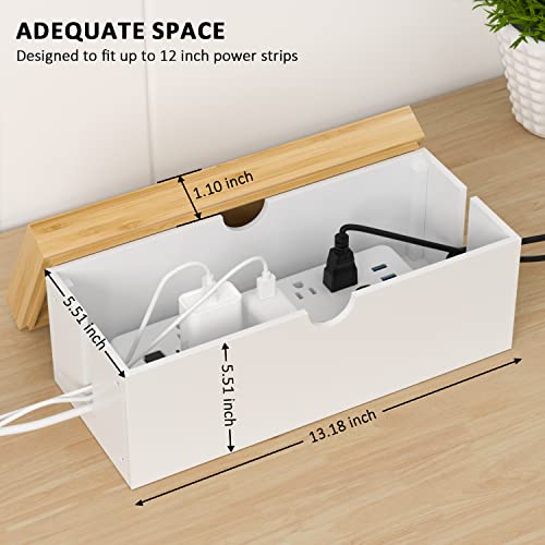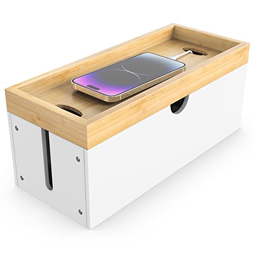 HoVoit - Bamboo Cable Management Box, Cord Organizer Box Cable Box to Hide Wires & Power Strips for Desktop Storage Cord Holder for Office Home,Assembley Required